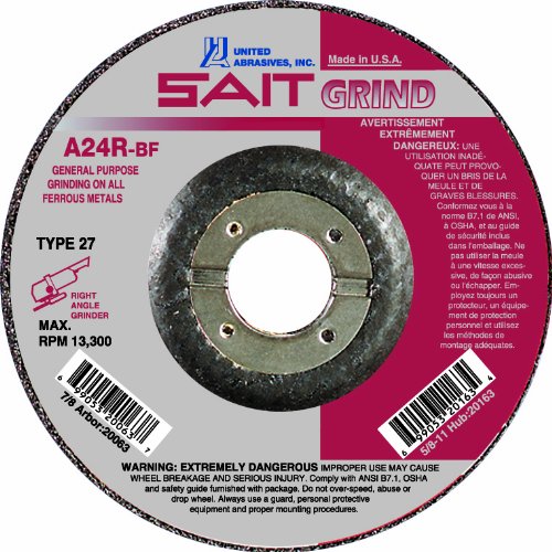 SAIT SAIT 20073 Type 27 Grinding Wheel, 5 x 1/4 x 7/8, A24R, 25-Pack 20073